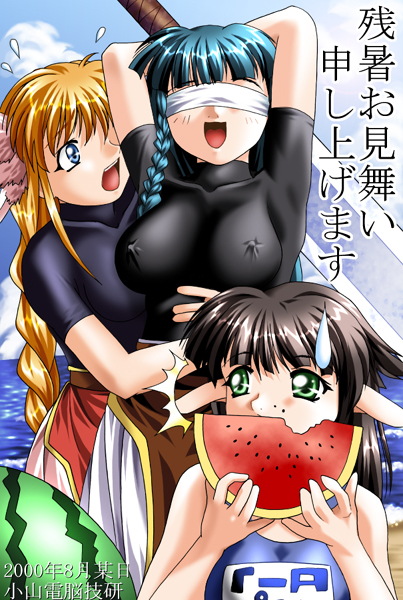 同サークルの処女作「DEEP FOREST」の3人娘揃い踏み、夏の浜辺で楽しそう(^0^)